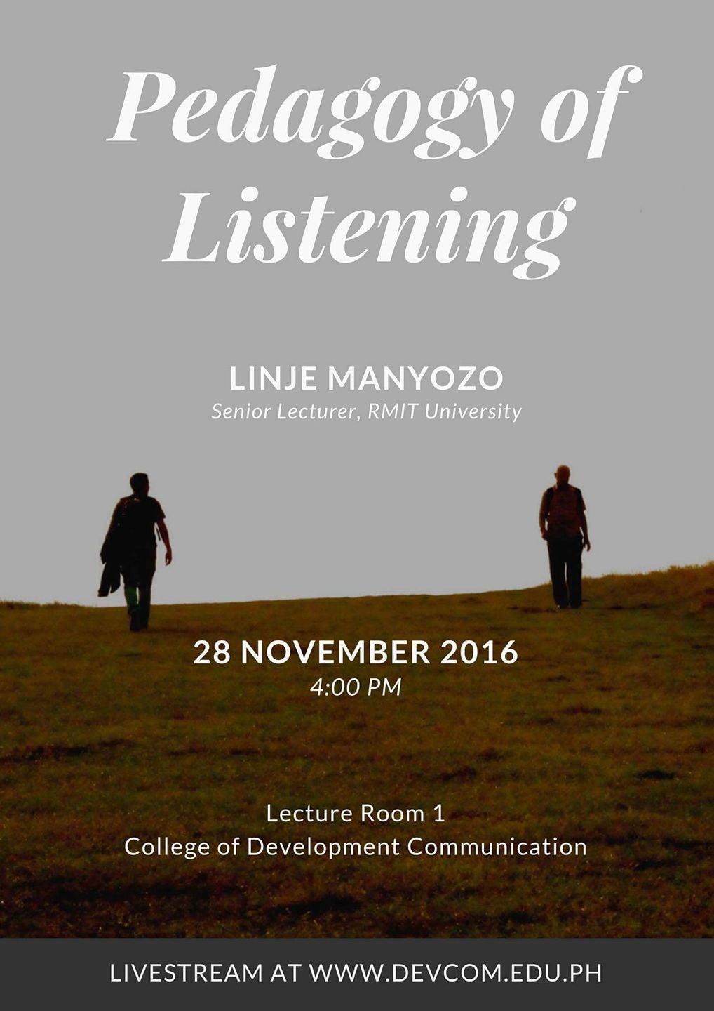 Dr. Linje Manyozo will be visiting the University of the Philippines Los Banos-College of Development Communication (UPLB-CDC) on 28-29 November where he will be having two speaking engagements with the faculty and students.